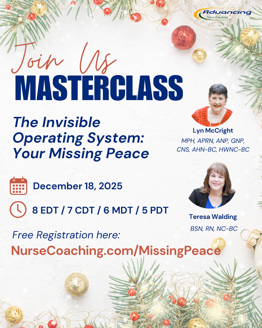 Your Missing Peace The Invisible Operating System: Your Missing Peace [REPLAY] December 18, 2025 Live Masterclass Replay. 🌿 The Calm: How Nurses Can Heal Burnout from the Inside Out. If you’ve ever felt exhausted, invisible, or quietly asked yourself “Is this all there is?” … this one evening could change everything. In just 60 minutes … Read more
