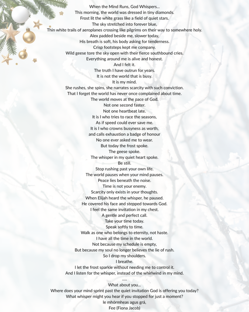 May your season be dressed in “tiny diamonds” and deep, honest peace.